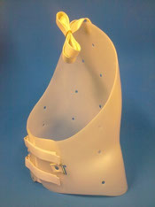 Fabricada en termoplástico es una ortesis bivalva con cierre de velcro, con o sin cazoleta en pié que puede llevar libre o limitada la articulación del tobillo.