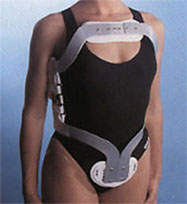 Ortesis rígida, para mantener la columna vertebral en hiperextensión. La forma lateral de los marcos, que desciende desde la axilas hasta las caderas, limita los movimientos laterales. Con tres puntos de apoyo: púbico, esternal y lumbar. Su estructura es indeformable con el uso.